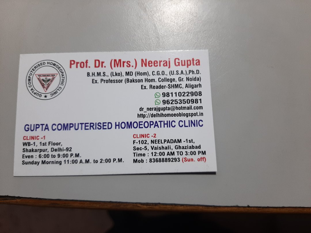 Gupta Comp. Homeopathic Clinic I Dr. Mrs. Neeraj Gupta I Vaishali Branch